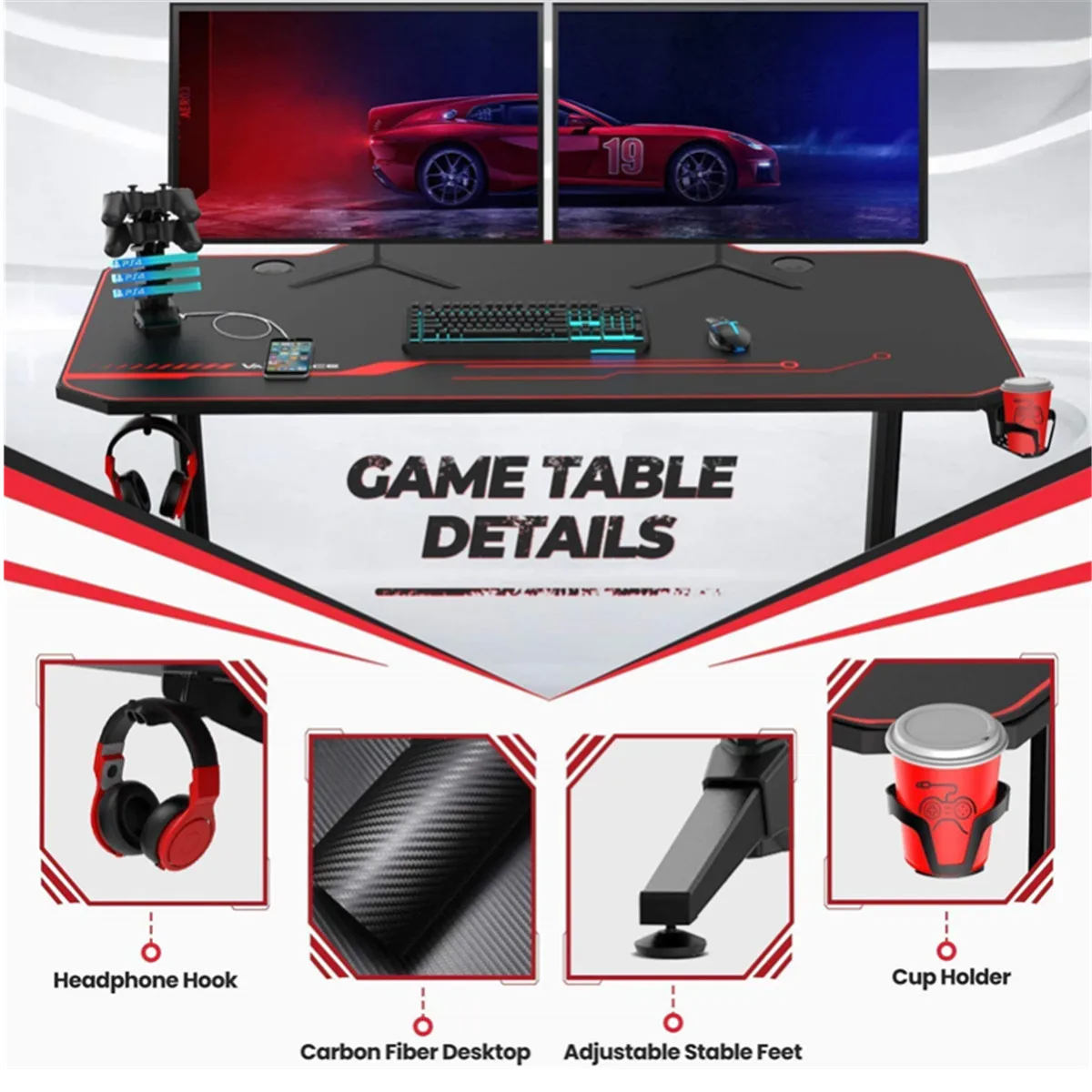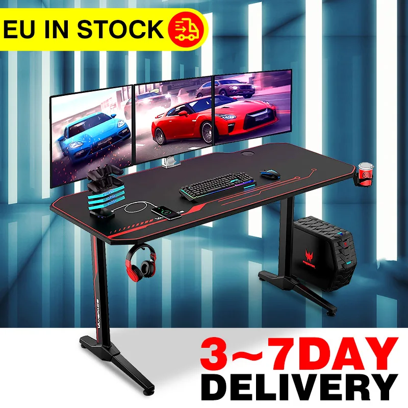 Product Name: 55 Zoll E-sport Gaming Schreibtisch Computer Tisch Ergonomische PC Schreibtisch T-Form Laptop Desktop-Maus Pad Gamer Escritorio EU Lager