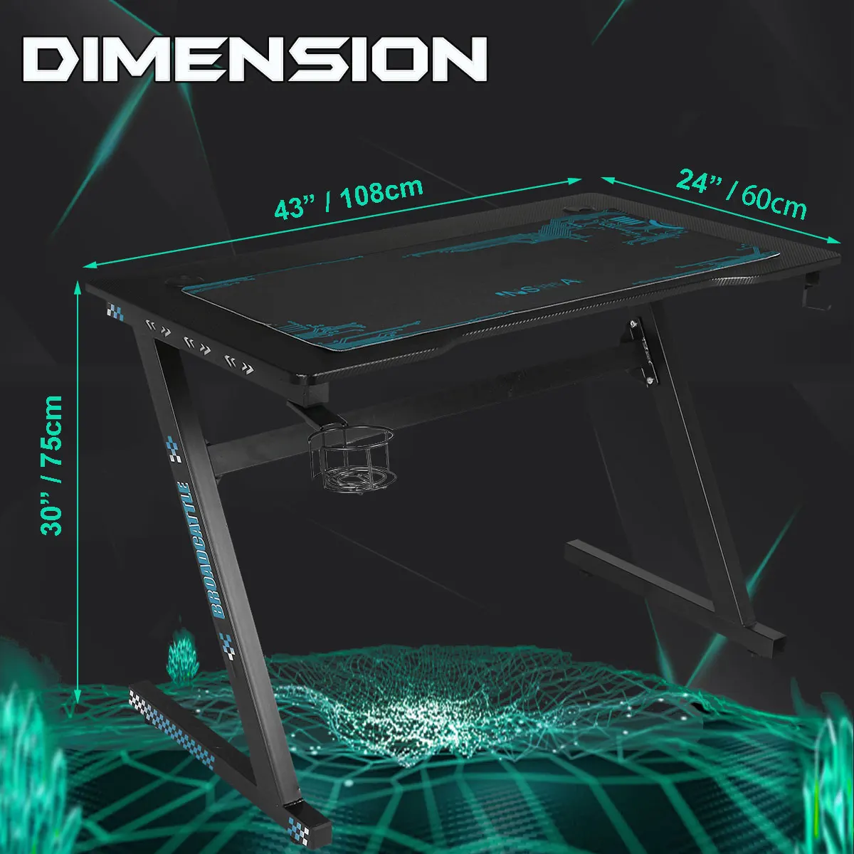 Product Name: 43 "spiel Tabelle Professionelle Internet Cafe Spiel Computer Tisch Mit Kabel Management Box Tasse Halter Kopfhörer Haken & Maus Pad