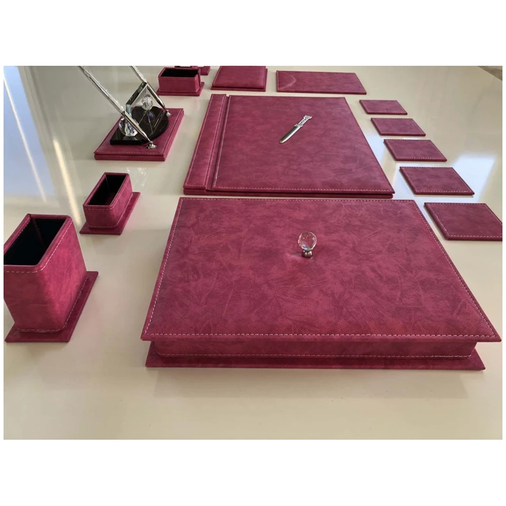 Product Name: Rose Rosa Farbe Business Büro Schreibtisch Leder Matte Set Organizer Zubehör (Büro Liefert, Büro Desktop-Set,)